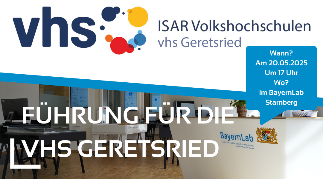 Führung VHS Geretsried im BayernLab Starnberg neue Technik kurz und bündig erklärt und erfahren.