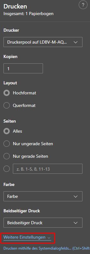 - Rechte Maustaste drücken → Drucken oder Tastenkombination Strg + P